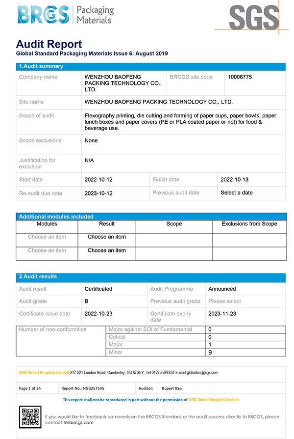 Wenzhou Baofeng беше създадена през 2000 г., построила високостандартна moden производствена работилня с площ 16 000 квадратни метра, повече от 200 служители, нашата фирма има повече от 22 години богат опит в упаковката индустрия, нашият основни продукти са: хартиени обядни кутии, хартиени чинии, хартиени чашки, чашки за сладолед, хартиени торби, неотивни торби, упаковки за столова съдове и друга хранителна упаковка, стремим се да разработваме нови продукти, за да удовлетворим нуждите на различните клиенти.